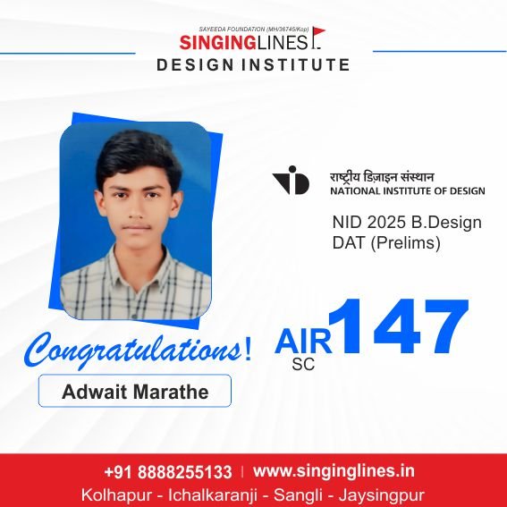 Join Singing Lines Design Institute, an ISO-certified institute renowned for coaching UCEED, NID, NIFT, NATA, JEE-2, and more. With expert faculty from IIT, NID, and NIFT, we prepare you for success in top design and architecture colleges.